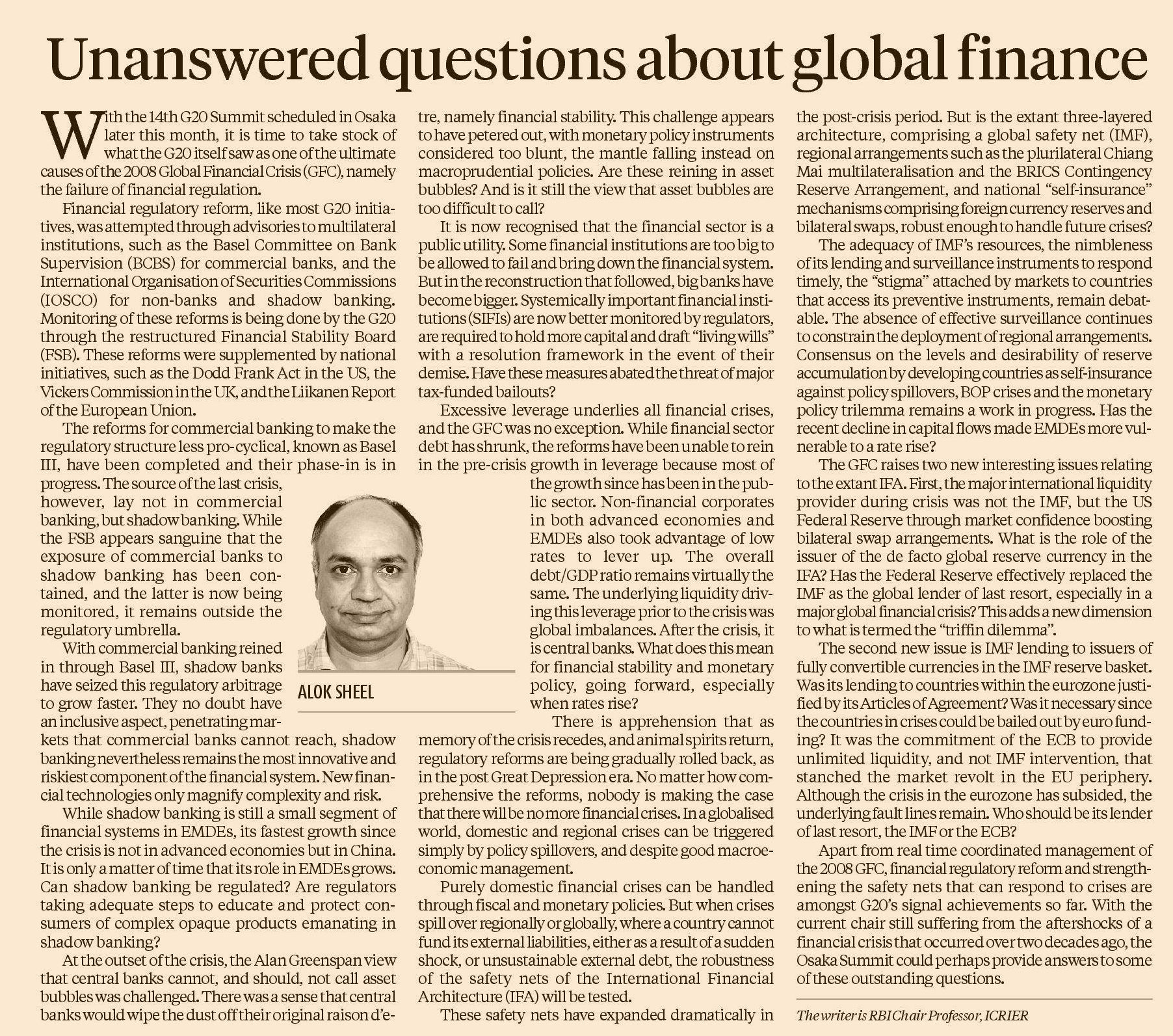 Much of this is on the G 20 and the Global Financial Crisis, including a full length book: ‘Rethinking Macro-economics 101: A Ringside View of the Global Financial Crisis from Asia in Real Time’ (Academic Foundation 2015)
