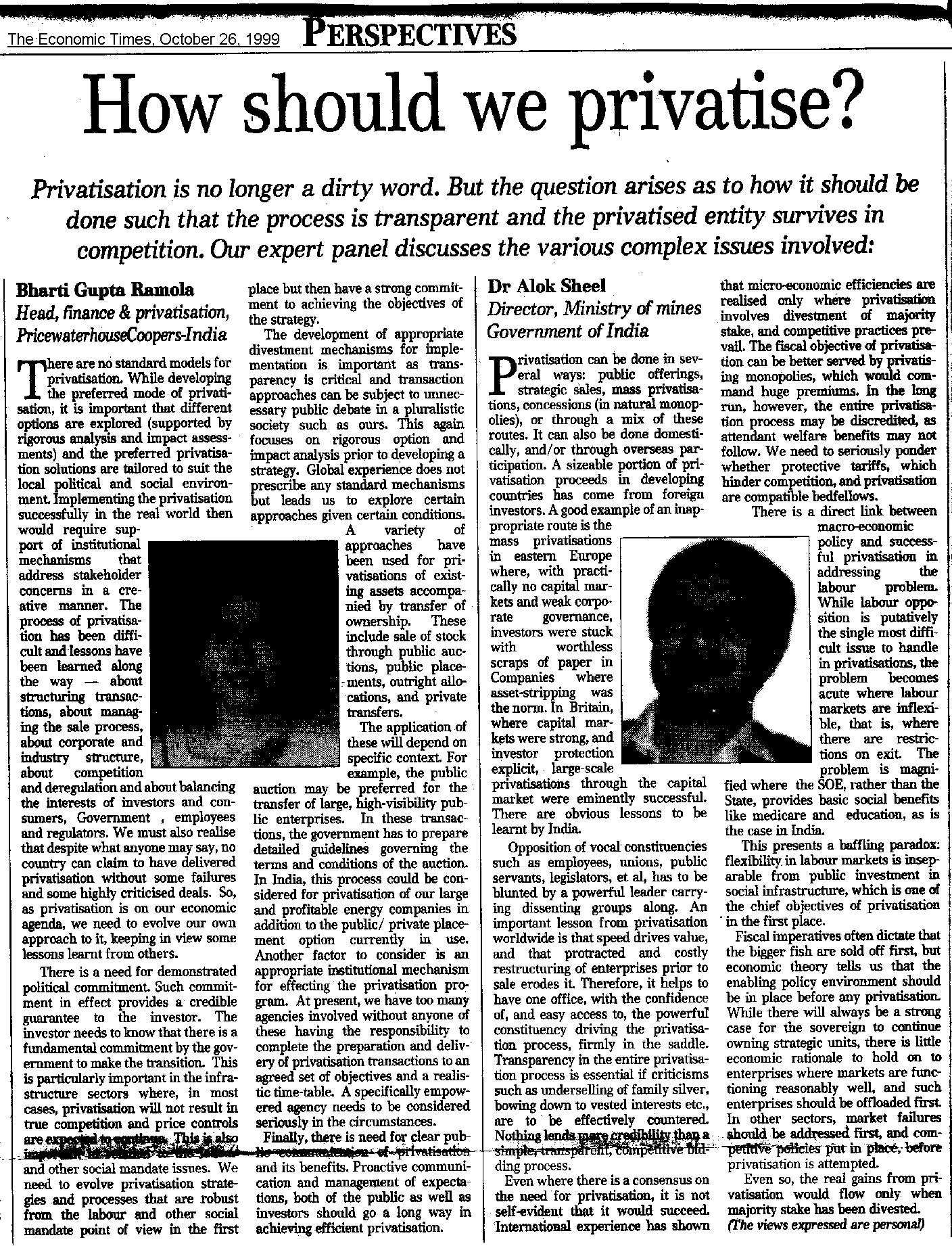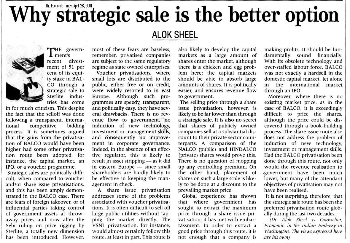 My next assignment as Director in the Ministry of Mines involved policy formulation in the Mines and Minerals sector, more specifically in the Aluminium sector, where India is globally competitive. The National Aluminium Company, a public sector undertaking under the administrative control of the Ministry of Mines, is one of the cheapest and most efficient producers of alumina and aluminium in the world. My work also involved working through the divestment of government equity in aluminium public sector undertakings, policy issues relating to trade policy in the sector, entry norms, capital restructuring, etc. I also exercised quasi judicial powers as an appellate authority against Orders issued by State Government granting mining leases. In June-July 1999, I attended a Three Week Workshop on Privatization, Infrastructure Reform and Corporate Governance in the Harvard Institute of International Development, Cambridge, Mass., USA. I was part of the inner team that worked on the privatisation of the state-owned Bharat Aluminium Company (BALCO), effectively the first successful privatisation story out of India. My assignment also involved attracting overseas investment into the mining sector and working in close co-operation with other countries. There is keen interest internationally in the Indian minerals sector since India shares a geological past with other great mining countries such as South Africa and Australia, as they were all once part of the super-continent called Gondwanaland during the paleozoic period. I represented the Government of India abroad in Moscow to interact with Russia on common mining projects; in Hanoi, as incharge of the Mining pavilion in the ‘Pride of India’ Show, and to negotiate a joint venture with the Vietnamese government; in Myanmar to explore the prospects of Indian investment in its nickel deposits; and in Kimberley, South Africa, to participate in a Technical Forum on 'Conflict Diamonds'.