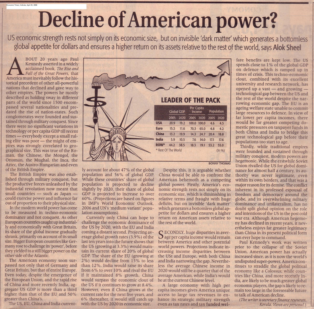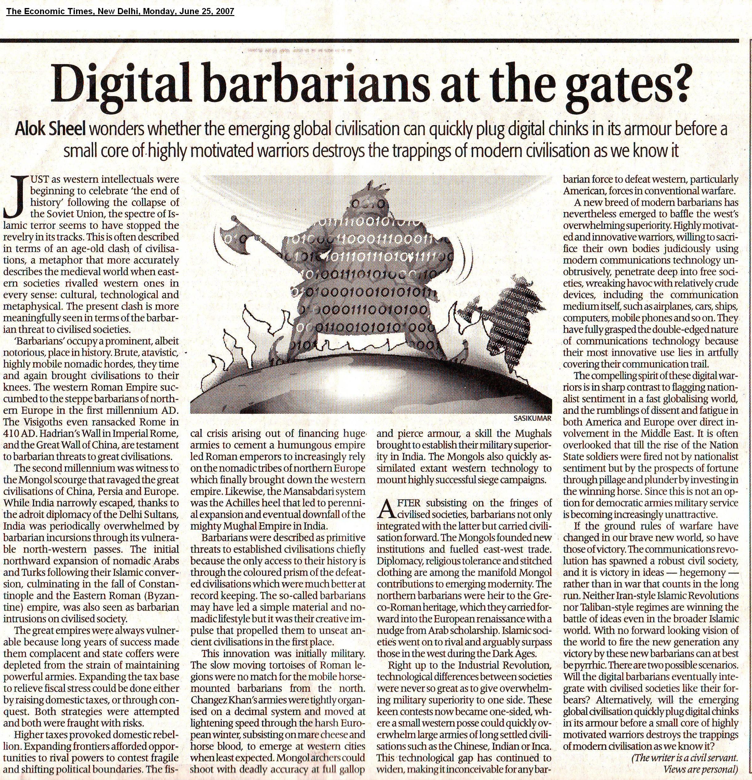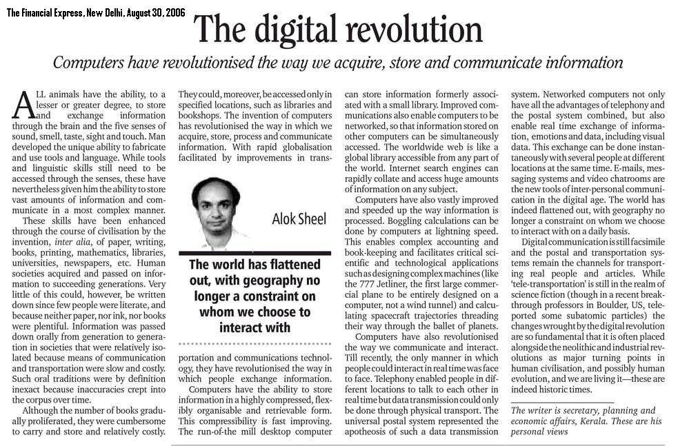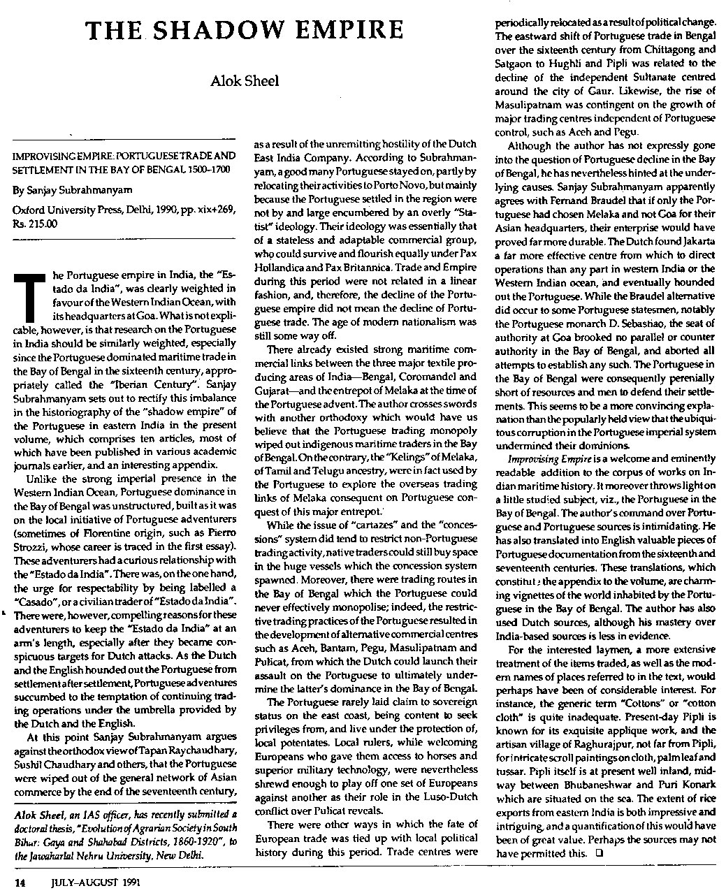 I have an abiding interest in the history of Modern India, and have published several articles and full-length book reviews in various academic journals, and have presented papers in a number of workshops and seminars both in India as well as abroad. In 1992 I was awarded the degree of Doctor of Philosophy (Ph.D) by the Jawaharlal Nehru University, New Delhi, for my thesis The Evolution of Agrarian Society in South Bihar: Shahabad and Gaya Districts 1860-1920. South Bihar is presently in a state of great social ferment. While not explicitly seeking to trace the origins of the present socio-economic crisis in the region, the Work nevertheless touches upon some it's historical antecedents. It is a regional historical study covering demographic trends, agricultural practices, technology and production, prices, trade and the rural social structure in the nineteenth and early twentieth centuries. The Work traces the deep impact wrought by British Rule in the Indian countryside, and also makes some comparisons with nineteenth century China and medieval Europe. Parts of my thesis have been published in academic journals. Contemporary history, which seeks to explain the present in terms of the past, is of special interest to me as this is where my training as a historian intersects with my profession as a civil servant. I have a flair for creative writing and am a regular contributor to the OpEd pages of financial dailies. I am currently working on full length books (non-fiction) that I hope to publish shortly.