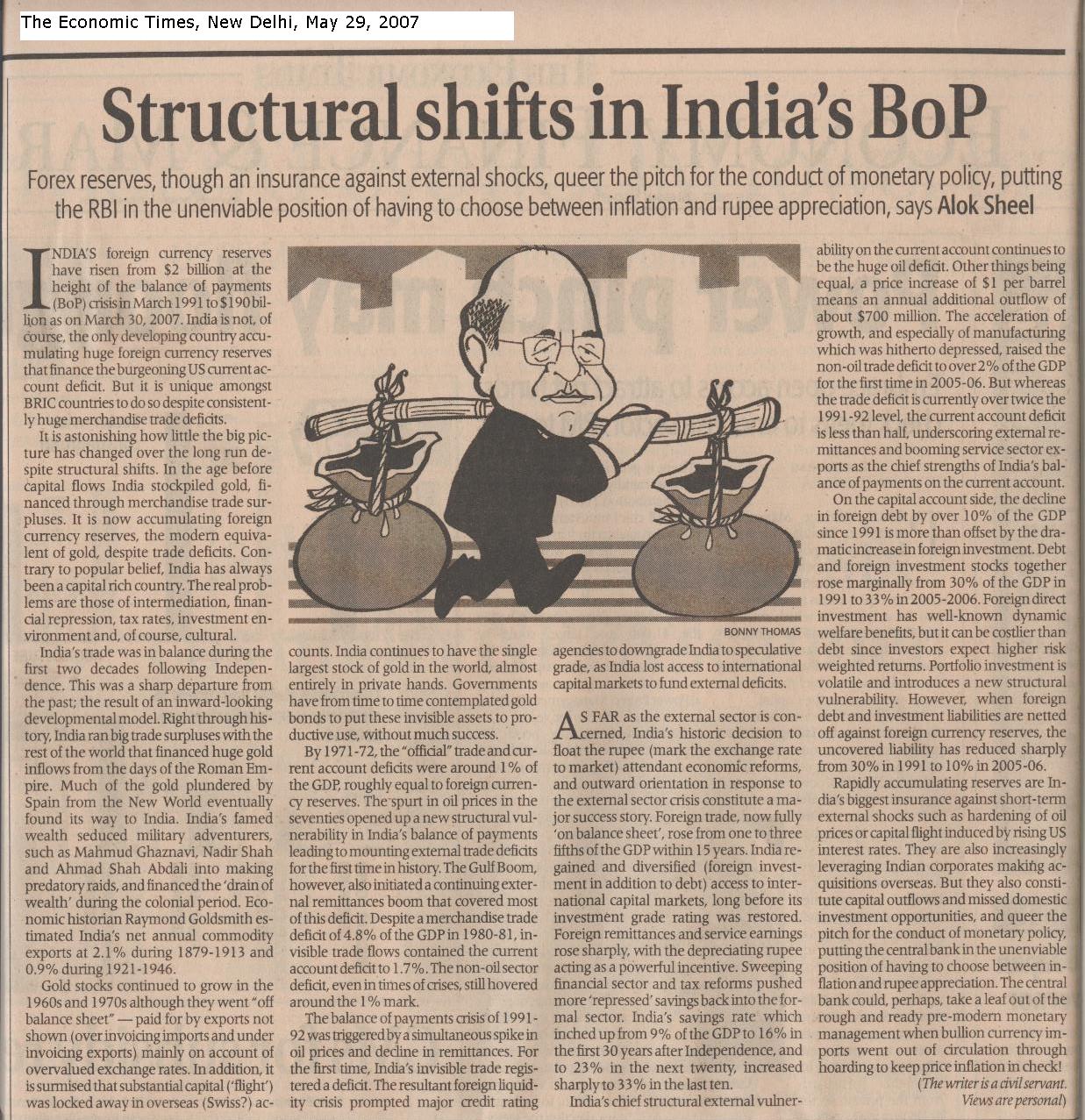 My subsequent assignment as Deputy Secretary, External Commercial Borrowings, also in the Department of Economic Affairs, involved formulating and implementing policies and guidelines for Indian entities borrowing from international markets, including issues relating to Sovereign guarantees. I was also responsible for setting and monitoring the national ceilings on such borrowings and guarantees, maintaining a computerised data base, and also tracking developments in international markets relating to hedging foreign currency exposures and emerging market debt instruments. I interacted on a regular basis with Corporate Heads, Multilateral and Bilateral agencies, international bankers, including investment bankers, from all parts of the globe, and with International Credit Rating Agencies (Viz. Moodys’, S&P and JBRI). My work involved evaluating and approving specific foreign currency credit proposals, while simultaneously taking a wider, policy related view. I was actively involved in managing problems encountered with overseas lenders in restructuring public sector enterprises. With infrastructural bottlenecks emerging as the major constraint on growth and development in emerging economies in general, and in India in particular, my assignment inexorably involved handling issues relating to mobilising the huge investments necessary for such projects from commercial sources within a speedy time-frame, especially in the critical power sector. I was also actively involved in the wider strategic exercise of India's re-entry in external commercial bond markets, which were closed to India since the Balance of Payments crisis of 1991. Incidentally, India re-entered these bond markets during my tenure as Deputy Secretary, ECB in the Ministry of Finance. I represented India abroad several times to negotiate external borrowings, including complex financial structures such as leveraged leases for the acquisition of aircrafts, and to sign sovereign guarantee documents (Ottawa, Frankfurt, Zurich and London), to persuade lenders to agree to the restructuring of public sector enterprises ( London and Tokyo), to explore the prospects of an overseas bond issue (New York), and to represent India in Seminars in the area of economic policy (Kathmandu and Tokyo). I have also presented a number of papers on economic policy changes and the management of India’s External Debt.