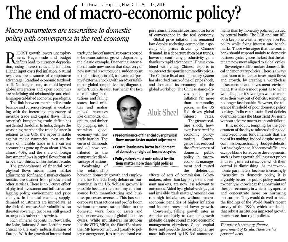 Major Economic Policy Issues for India in the New Millenium